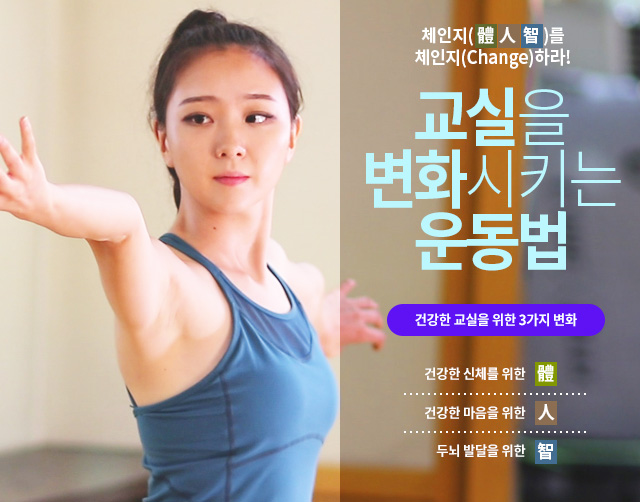 따라서 본 과정에서는 이 상황을 개선하기 위해 몸과 마음, 그리고 지식까지 챙길 수 있는 체인지(體人智) 운동법을 제시 하여 일상적인 쉽고 단순한 운동 동작을 통해서 교사의 몸과 마음의 건강 및 교실 안에서 많은 시간을 보내는 학생들도 운동을 통한 몸과 마음의 변화를 느낄 수 있도록 합니다. |